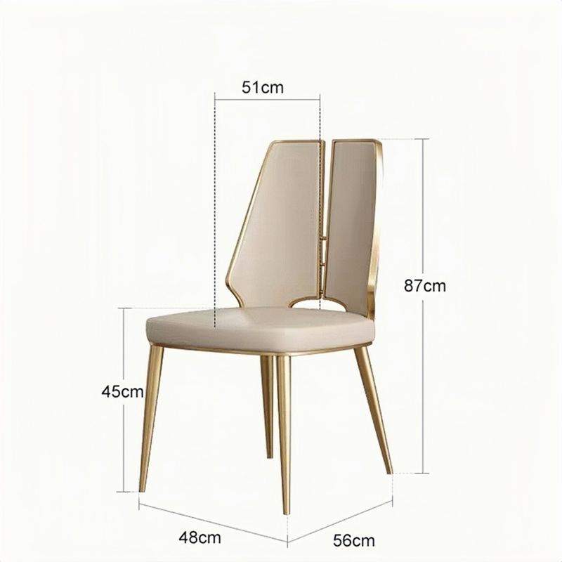 This light luxury dining chair with rigorous materials with care, the use of imported high-quality leather fabrics, surface texture natural, smooth and delicate, good feel, comfortable touch, with good breathability flexibility, so that people feel comfortable. And wear-resistant and scratch-resistant, smooth surface, easy to clean, if there is a stain on the surface, gently rub, easy to solve. The cushion is filled with rebound sponge, safe and environmentally friendly, no odour, comfortable to sit, not easy to deform. The overall frame is made of stainless steel metal, beautiful shape, light weight, smooth and beautiful surface, superior corrosion resistance, overall more high-end, showing your quality of life.