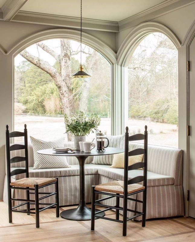This is one of the most common tricks, especially if you have a great view from the window, so you can sit here and have a cup of tea, read a book and enjoy the rare moments of relaxation, L-shaped, which can accommodate 4 or 5 people at the same time, but more importantly, the bottom can also be stored, designed as a chest of drawers, where all the miscellaneous things in the room can be placed, helping to keep the room tidy.