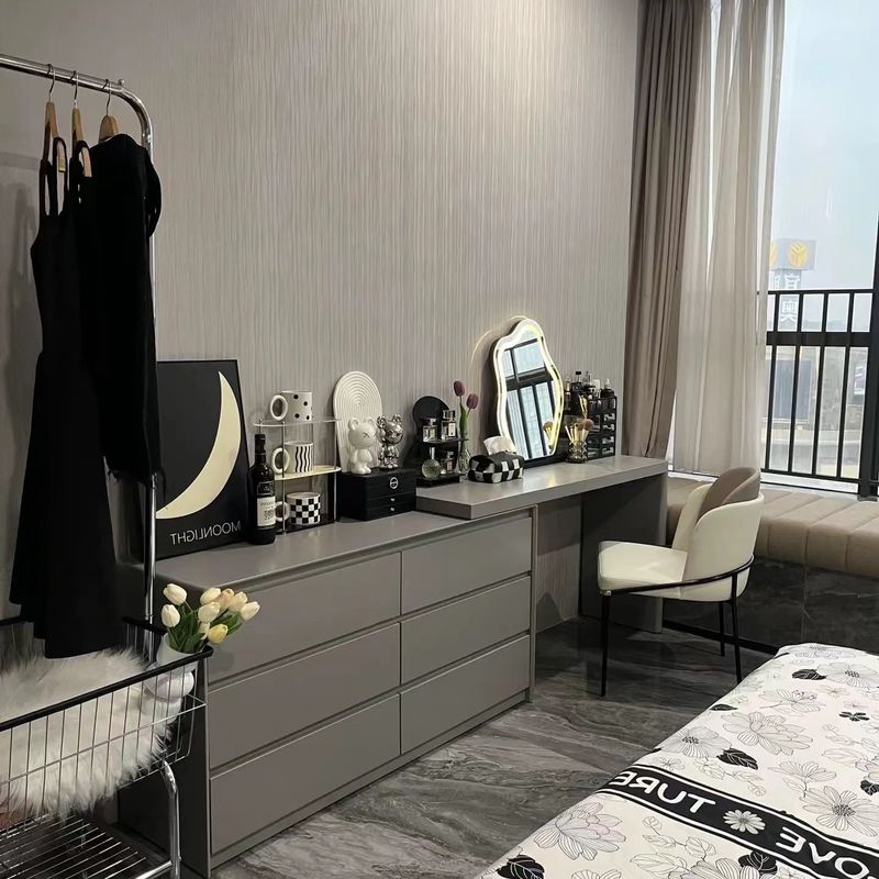 It's only 40 centimeters deep, so it doesn't take up much space. Small dressing table can be used for office, reading, makeup, etc.