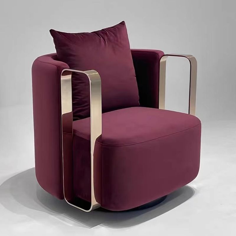 Fuchsia Creative Luxury Velvet Sofa Chair Gold Stainless Steel Armchair Custom