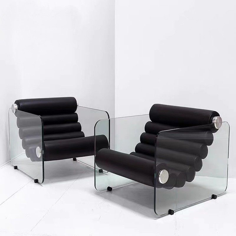 This Italian minimalist clear acrylic lounge single chair is suitable for both personal relaxation and social occasions, combining clear acrylic and creative toughened glass with a leather-like texture that creates a captivating visual effect. The comfortable seat also adds an artistic and modern touch to the interior space.