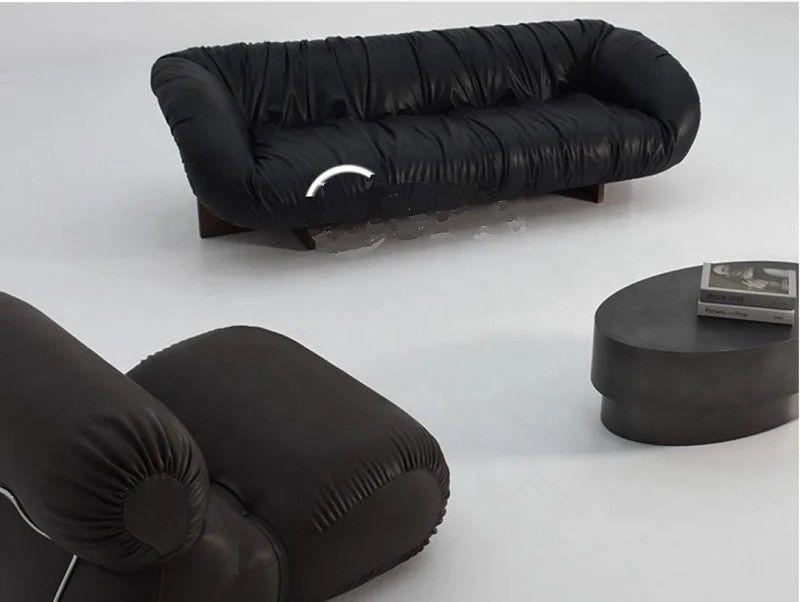 Whether used as a stand-alone statement piece or integrated into a larger seating arrangement, the black pleated leather sofa effortlessly adapts to a variety of spatial configurations and enhances the overall ambience of the room.