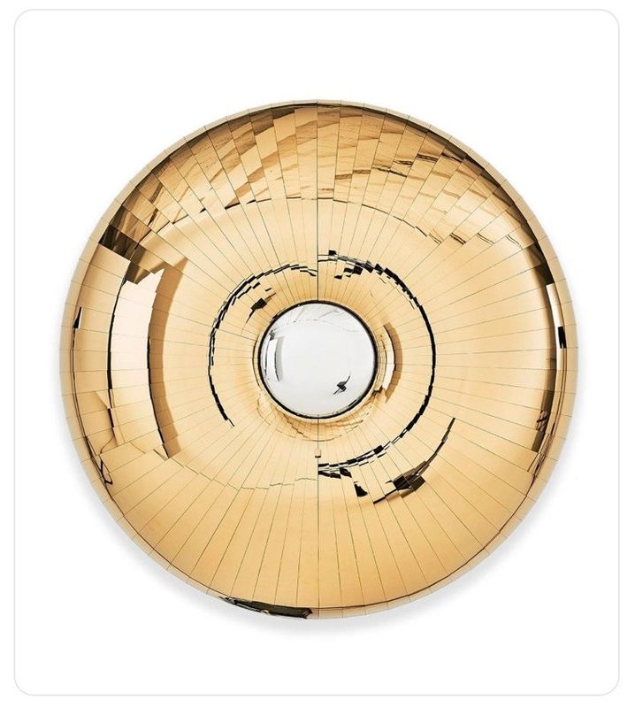 The bilateral symmetry of sea urchin shells provides the creative and technical influence for this large wall-mounted bar cabinet. The 70 polished brass panels on the doors are curved and faceted, creating a fragmented reflection of the user's environment. The panels are arranged around a central convex mirror, creating a similarly distorted but clearer, cleaner view that draws the user's eye inwards. The bar cabinet's switching mechanism is precision engineered to be easily operated by the user alone, without the use of any motors, in fact entirely. The user simply presses the hidden key lock and the centre mirror pops outwards, then simply pulls the centre mirror down at a 90° angle to reveal the polished marble worktop and luxurious wood interior at the back. In the centre of the cabinet there is a shelf with a mirrored back wall to bring light into the work area of the cabinet. There are four adjustable shelves made of toughened glass at the top and four at the bottom. There are two hidden drawers on the inside of the cabinet doors that open with a push button.